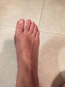 Durante il movimento la dorsiflessione del dito, causa un conflitto doloroso tra base della falange e l’osteofita dorsale della testa del metatarso.